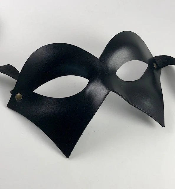 The leather Punti mask is handcrafted from quality Italian leather. The mask is handmade in Venice, Italy and is very comfortable to wear. Due to the nature of leather, the mask is flexible and can form fit for any size.